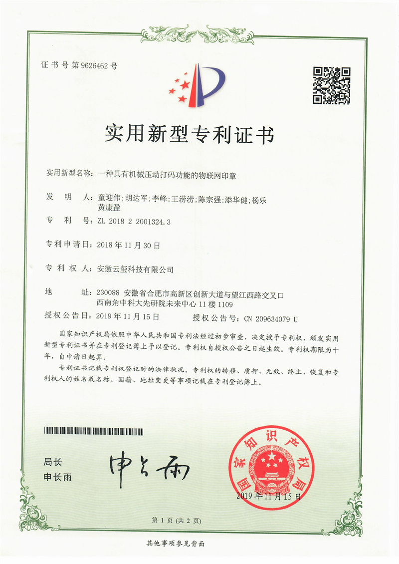 • 一種可識別機械壓動打碼的物聯網印章及驗證方法